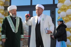 В этот день Верховный муфтий наградил имама Бородулихинского района Арипжана Акимбатчаева юбилейной медалью к 35-летию ДУМК и вручил ему ключи от нового автомобиля, приобретённого за счёт Общественного фонда «Бородулиха-2025».