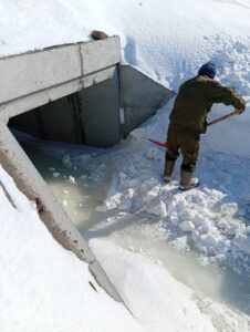 В настоящее время ведётся очистка водопропускных сооружений.